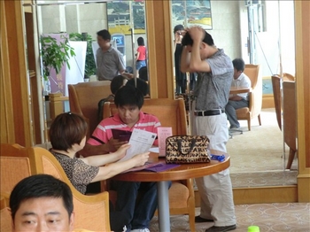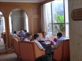 一些到会的朋友报到之后并不急于回房间休息,而是聚在接待处旁边的贵宾等待区讨论有关加盟的心得和想法.