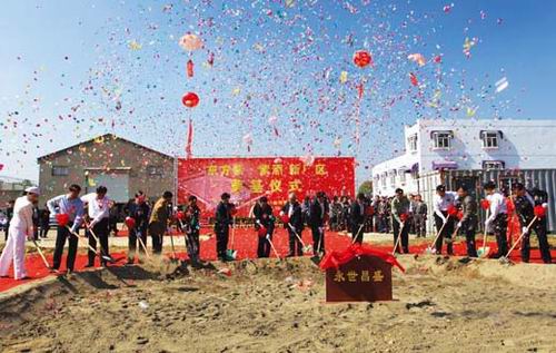 [出席仪式的领导和嘉宾进行奠基培土]