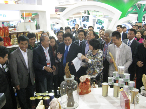 走进展厅,赵树丛同志仔细查看了各大展馆布展参展、安全保卫、客商接待等情况,并不时走进展位与参展商亲切交谈,了解各省特色产品、优势产品。