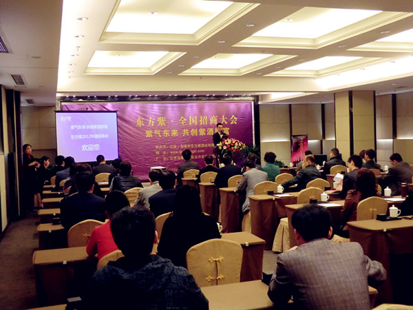 东方紫•2012年度招商会于3月31日成功在句容举办,会议期间与会客商与公司招商部门进行了沟通和交流。纷纷表示了对紫酒经营理念的认可和对产品品质的肯定,并且积极签署代理协议。
