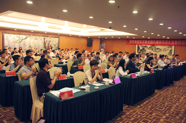 高董事长、陈总裁、张学会执行总裁、市场部经理徐艳旗等公司领导出席了本次会议。会议议程包括了东方紫一年来取得的成绩及未来的工作安排、东方紫产品营销培训、代理商经验分享、调查问卷解答、现场答疑、新厂区、桑果园参观等环节。