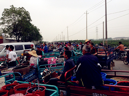 接近傍晚,果农依然没有散去,有秩序的等待领号过磅。