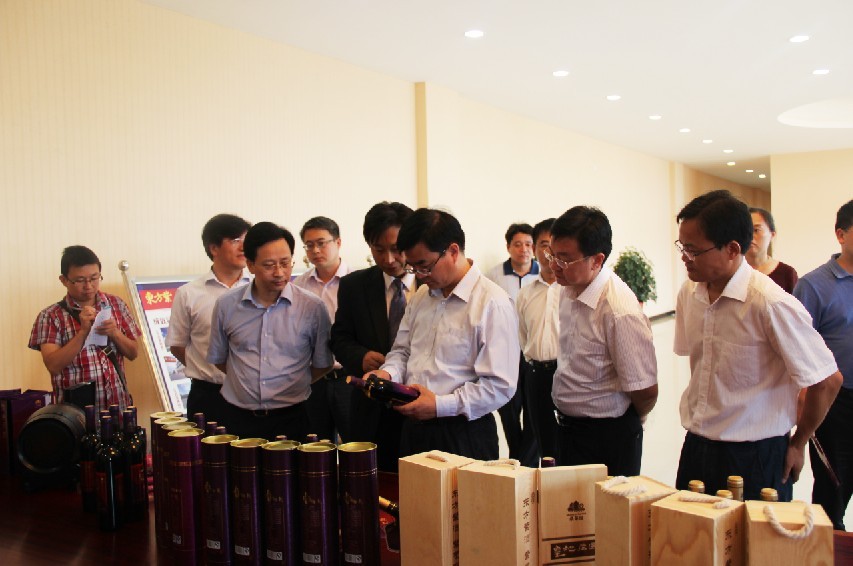 杨省世书记认真查看了东方紫·紫酒产品,并在高董事长的陪同下参观了东方紫的厂区,听取了关于低温发酵技术、存储酒罐方式、成品酒罐装线的情况介绍。