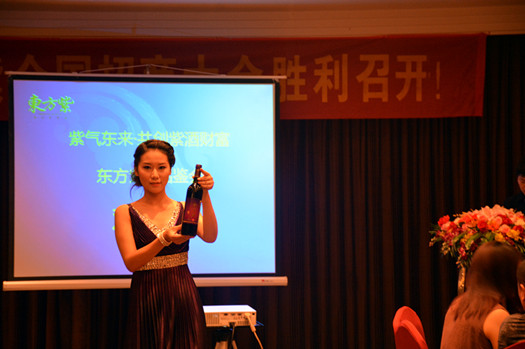 在东方紫高端品鉴会上,公司模特为客商展示东方紫产品。
