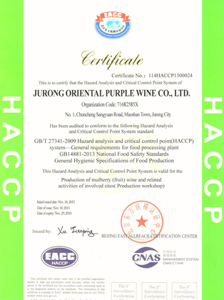 东方紫通过HACCP食品安全卫生控制体系认证
