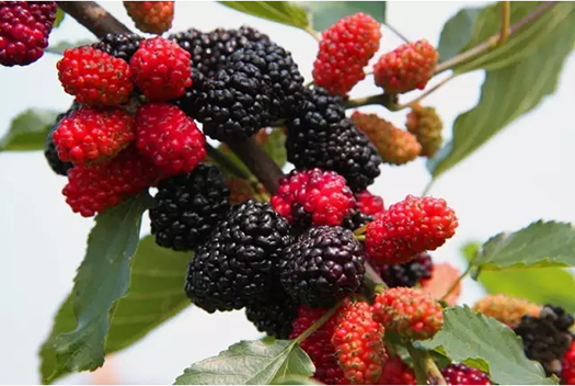 桑叶养蚕织丝绸,桑果精酿成紫酒。我国的桑业生产历史悠久,约在五千年以前,先民就在中原大地上开始栽植桑树。桑椹自古以来就被称为“民间圣果”,民间一直流传着桑椹救驾刘秀的典故,以及蔡顺采桑、拾椹孝母的故事。1993年国家卫生部把桑椹、桑叶列为“既是食品又是药品”的农产品之一,为“药食同源”之品种。桑椹具有防癌抗癌、乌发美容、补肾益精、解毒排毒、降三高等多种功效。