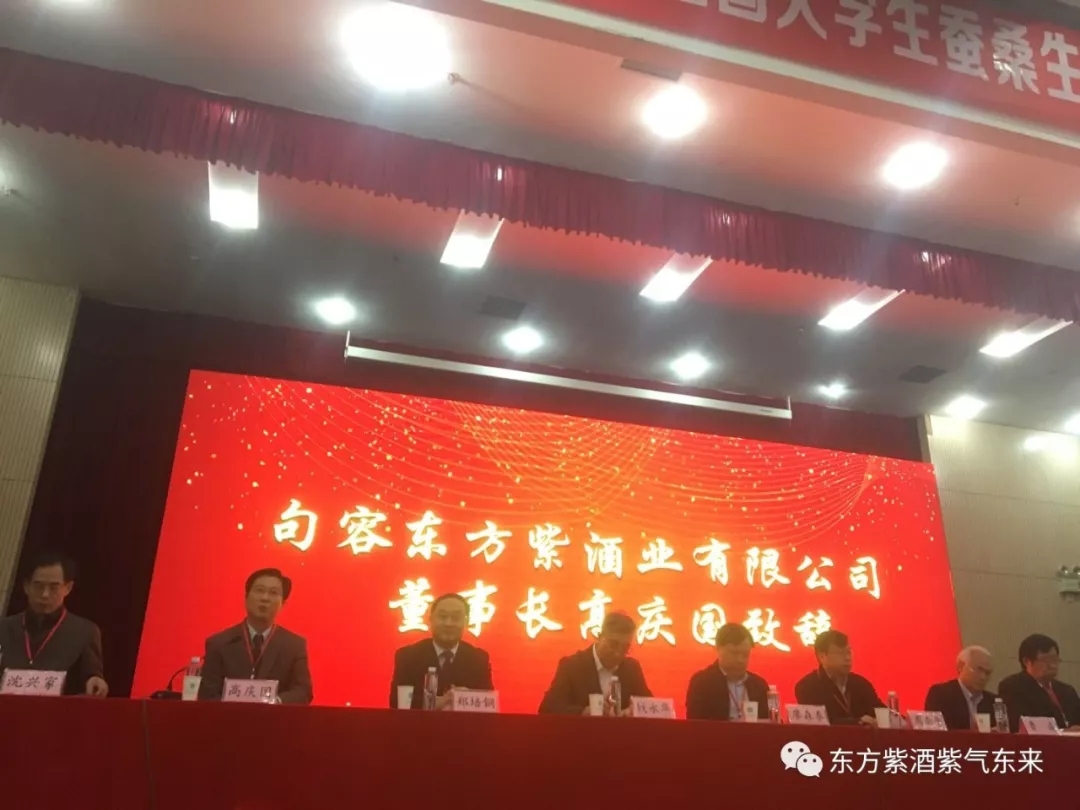 中国蚕学会理事长、广东省农业科学院书记、研究员廖森泰表示,这次举办“东方紫杯”第一届全国大学生蚕桑生物技术创新大赛,目的就是为蚕桑生物技术专业大学生、研究生创新创业的成果展示搭建平台,带动全国蚕桑专业大学生创新的热情。今后每年举办一届,形式也更将多样化,比如蚕桑创新设计、创新丝绸产品、蚕桑生物旅游等等,希望全国大学生蚕桑生物技术创新大赛越办越好。东方紫酒业董事长高庆国博士在大赛开幕式上致辞,预祝全国各地赶来参赛的大学生赛出好成绩,希望通过大赛将中华蚕桑文化更好地传承并发扬光大。