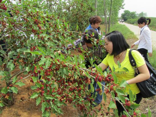 [参会者采摘、品尝桑椹]