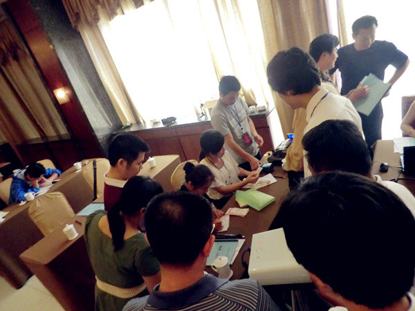 在交款台处,等着交纳首批货款或者定金的经销商排起了队,在招商经理指导下有序完成签约手续。