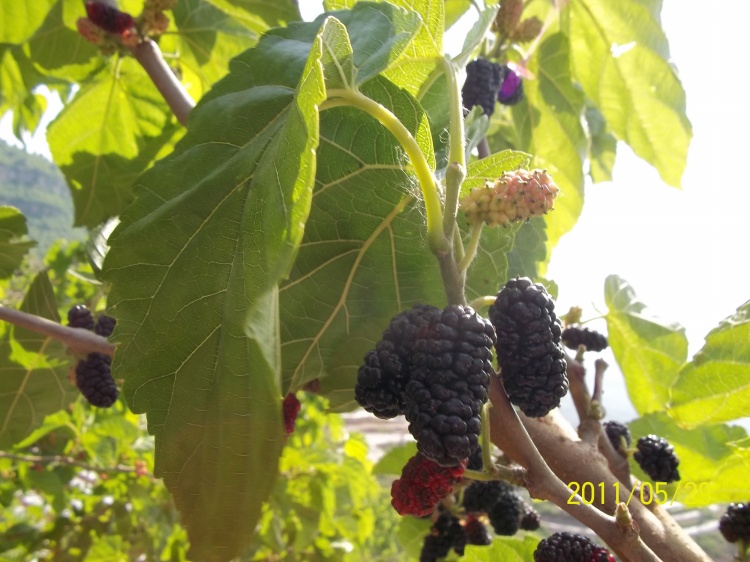 春衫已褪暑犹轻,览胜寻幽故道行。 荫绿伞撑天欲暗,隙光叶漏眼斑明。 园中圣果随心采,阡陌游人笑脸盈。 光武钦封经百世,盛传美誉古桑情。 桑椹树为黄河故道中的主要树种,芒种时节,桑椹成熟,如繁星缀空,村人持长杆击树,收获桑椹。行人亦可随意摘食,并不索值。尤其雨过初霁,纤尘皆无,清新凉爽,桑椹品味更佳。人们步于千顷葱绿间,信手摘食,别有一番情趣。又传桑椹曾被东汉光武帝刘秀题名为“天果”。故此景名曰“天果芒种”。